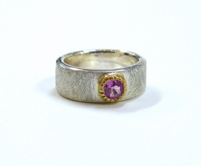 Sterling silver, 18ct gold & 5mm pink Madagascan Sapphire.