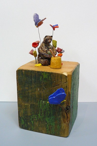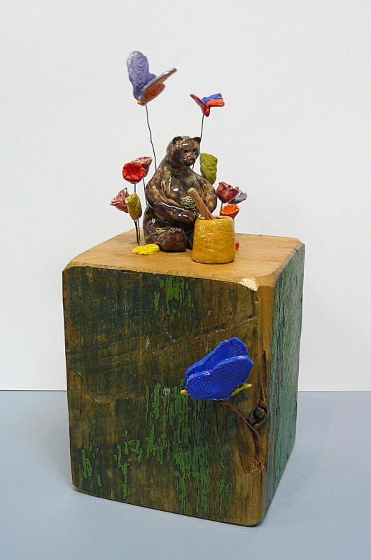 Ceramic and wood.