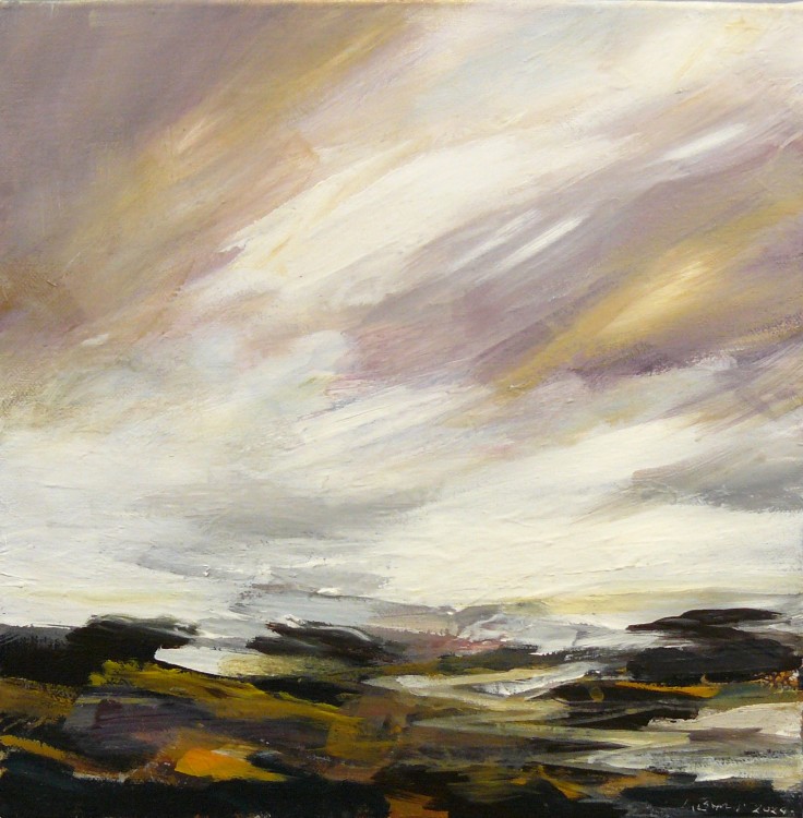 They depict the changing atmosphere throughout a day, with an emphasis on the impact of light on colour and shadows over seascapes, landscapes and cloud forms. I try to capture the essence of a place, seen or remembered and allow the viewer to project their own interpretations.