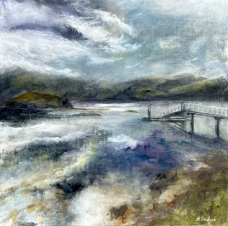 Scapes - The places are real, I’ve set foot there - gazed at the setting sun, felt the icy chill wind or the damp mist pervading. No wonder the people are absent! It is that memory I paint; pared back and simplified using my preferred ‘toned down’ colours that calm.
