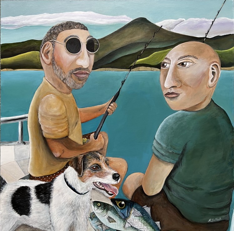 Mates & Scapes is a celebration of people and place, expressed in two seemingly disparate artistic styles. My practice of moving between detailed humorous figurative works and impressionist or stylised seascapes void of any people, provides the necessary mental space to resolve issues and recharge, giving new energy to the next work. Sometimes the styles seemingly overlap morphing into a new direction.