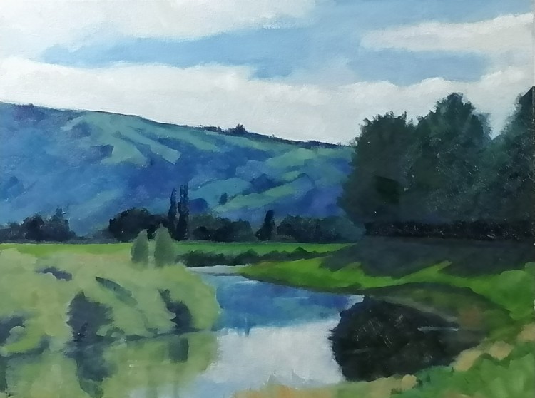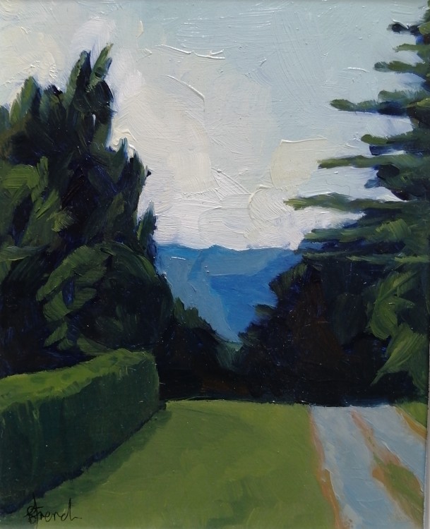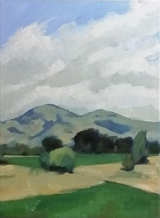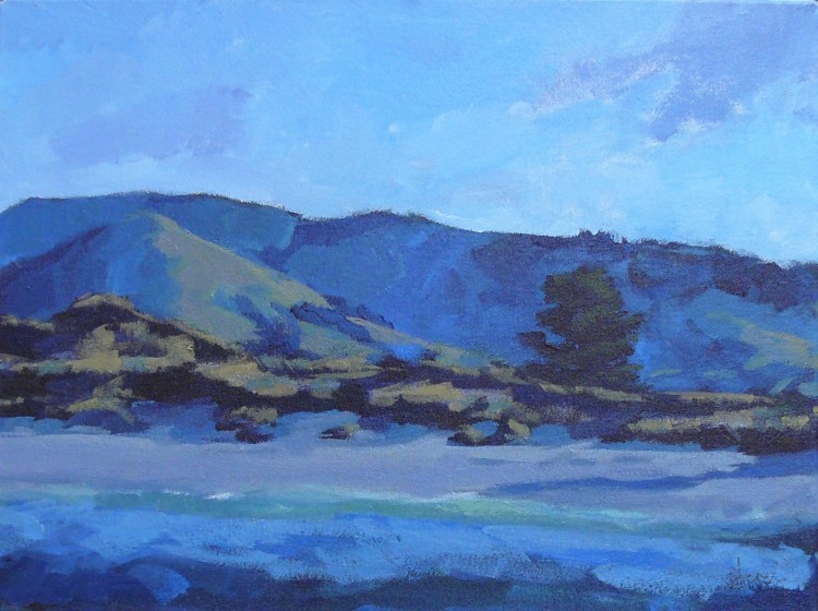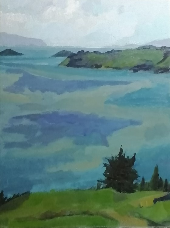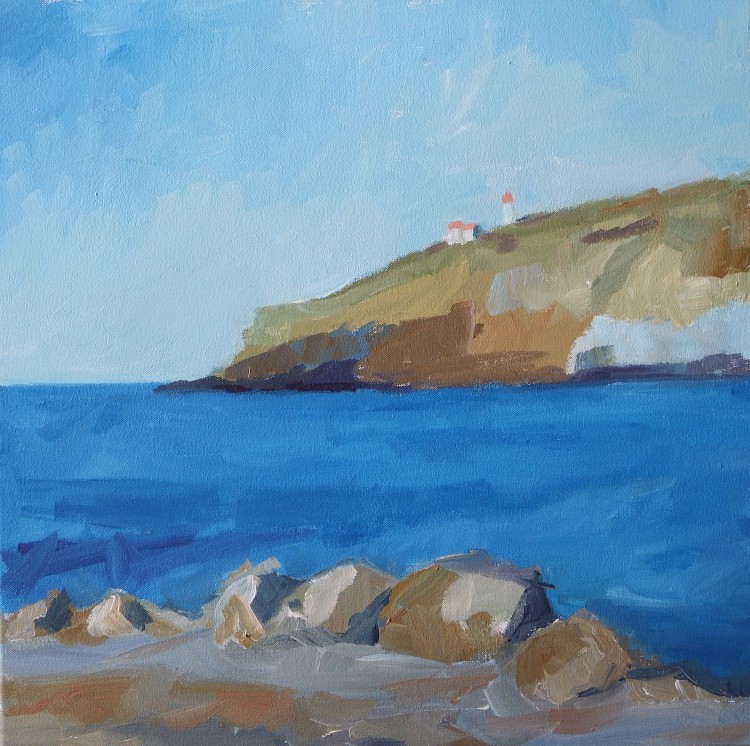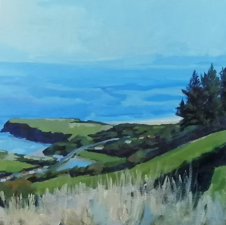 This is a challenge with the familiar, the landscape having to be re-seen. The result is a series of paintings capturing the local landscape, the earth, the sea and the sky, with the landscapes' ever-changing moods, colours and moving light.