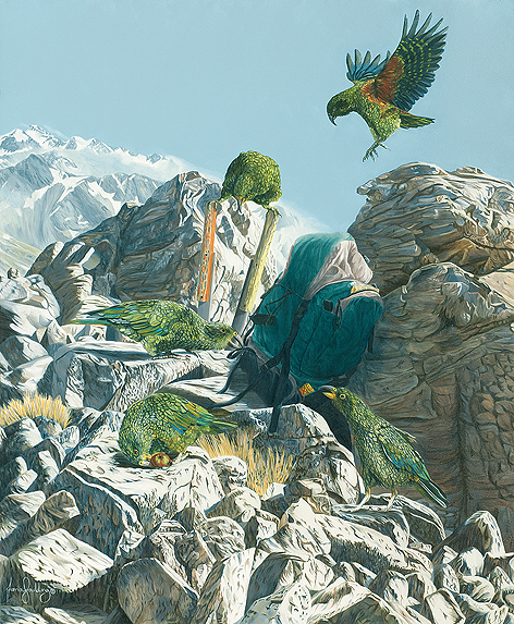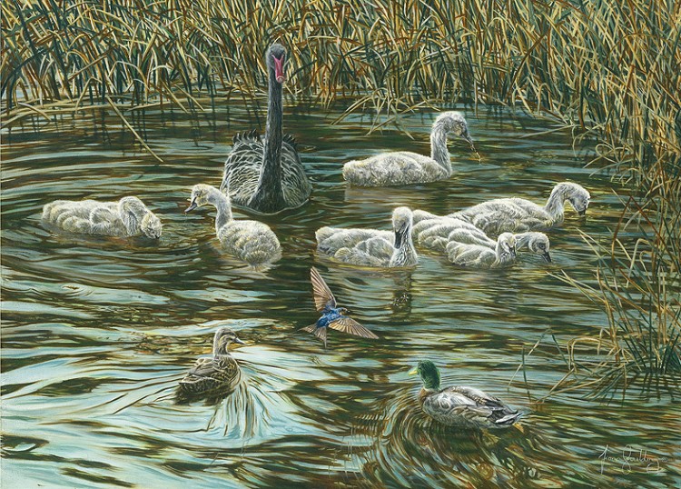 A Different Perspective explores the relationships we have with animals and touches on this incongruity. Some paintings simply admire the beauty found in nature and the intricacies within; while others focus on the impact we have on animal’s lives by introducing predators and removing natural habitats. Several paintings consider the relationships animals have with each other and us, the joy they give us and our choice to kill them in return.