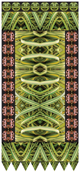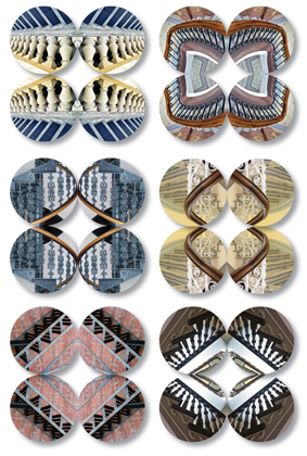 They reveal an ongoing interest in the pattern potential of her surroundings, whether in natural history or an urban built heritage, and allude to past cultures and art forms where the decorative was integrated with the functional. None of the images venture far from their reference to nature; even when the original source is man-made and mass-produced the resulting effect is very organic.