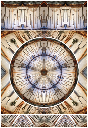 The images in this exhibition traverse the past five years of the artist’s digital explorations – a personal history of recurring themes and locations revisited. By combining her art, photography and design skills, motifs have been taken from camera to computer and rearranged creatively, imposing a designed aesthetic utilising repetition, reflection, symmetry and distortion.