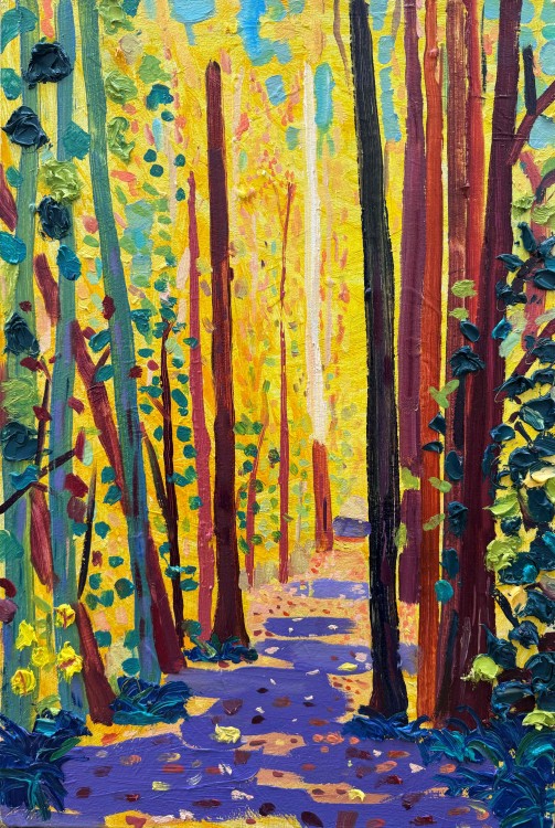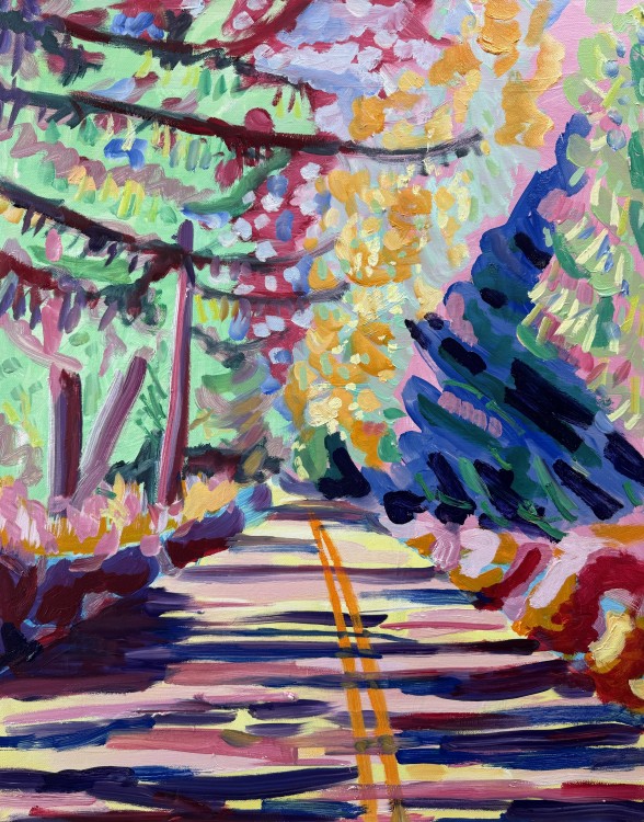This series of paintings has been a chance to give myself an opportunity to pause, pursue and explore the sense of place I feel when immersed on State Highway 85, also known as the Pig Root.
