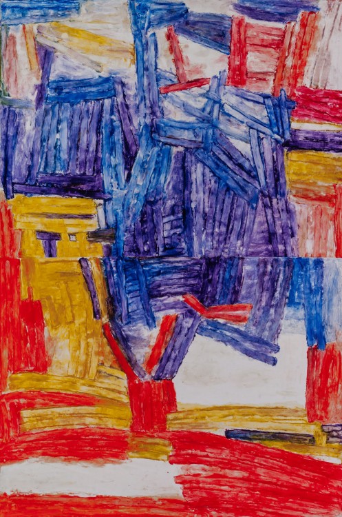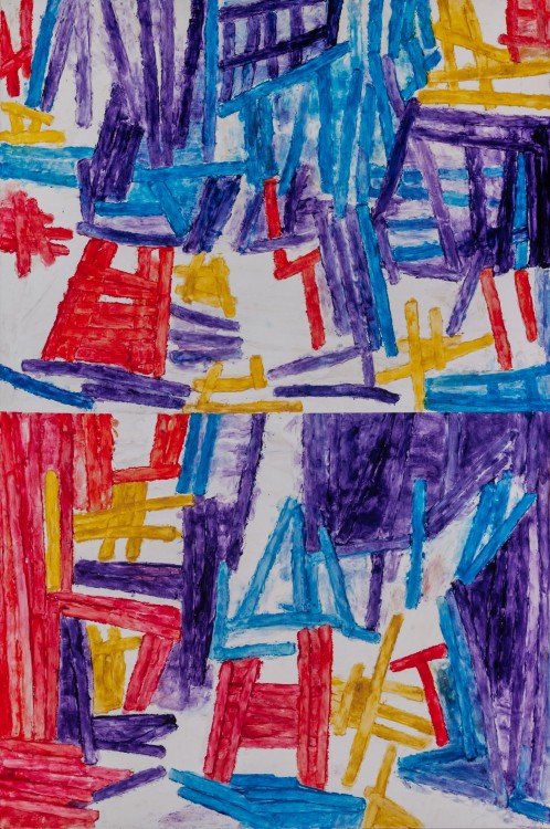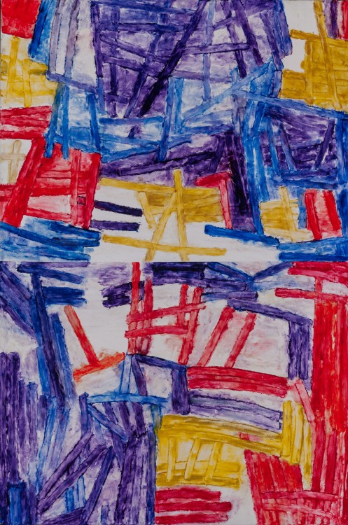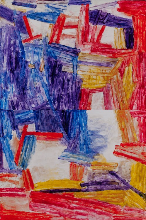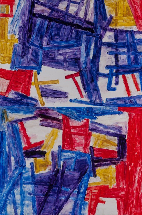 The techniques used in Rods and Poles echo Jessica’s earlier series of abstract earthquake paintings. In this series however, Jessica takes the initial imagery through an unfolding series of abstractions moving away from the original more realistic rendering of the scene. While in Christchurch, in its process of rebuilding, she noticed the extensive use of scaffolding. This experience has subliminally affected her painting and the compositions look like they consist of overlapping rods and poles. The symbol of the pole, again relevant to Jessica as it connects with the action of pole-vaulting, to overcome ones obstacles and find a new place to land.