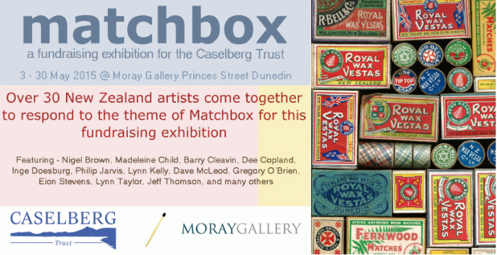 In support of the Caselberg Trust over 30 New Zealand artists have very generously donated work from a wide variety of media - painting, print, sculpture, textile, ceramic, jewellery and poetry on the theme of the humble matchbox.