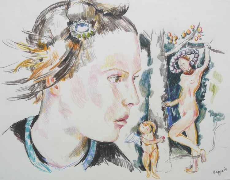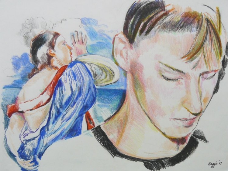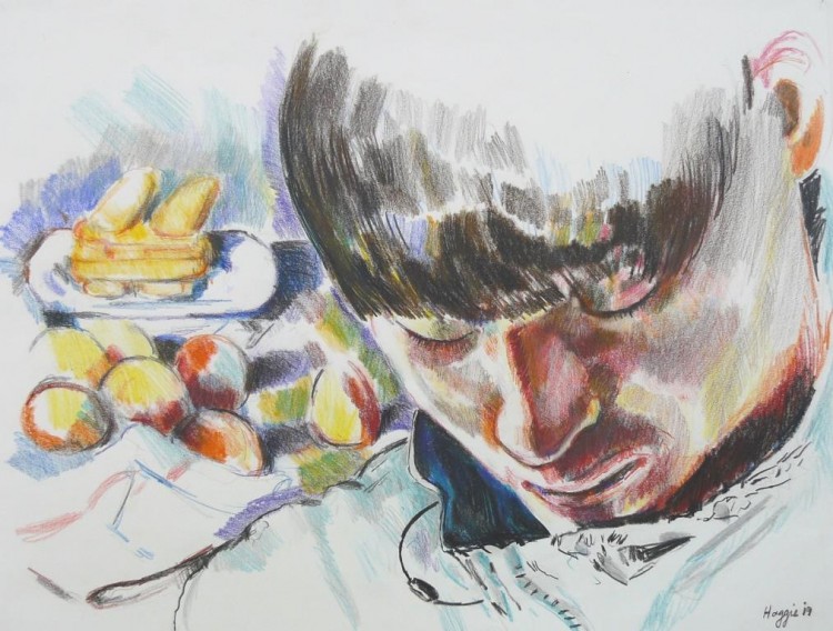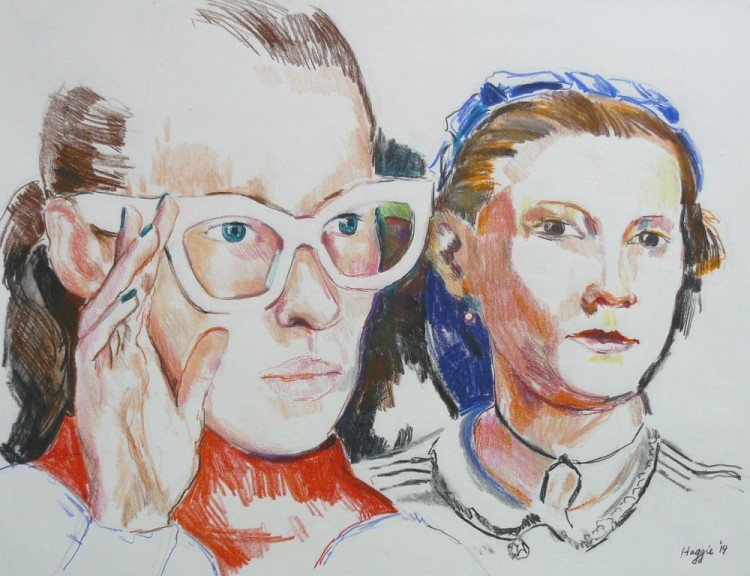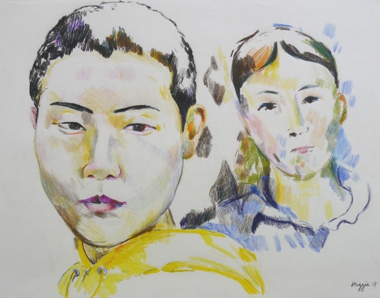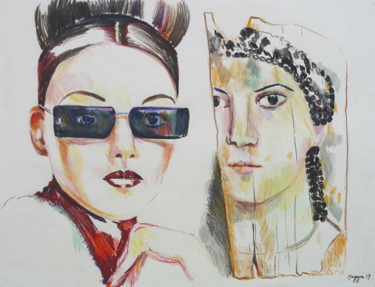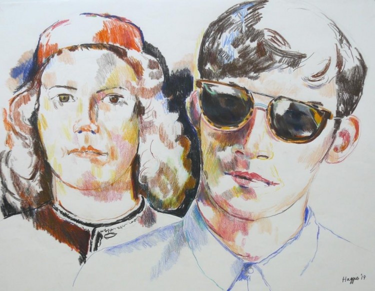 As a painter myself, I love depicting skin colours and facial features: hair, lips, eyes and sunglasses, using the quick medium of colour pencil.