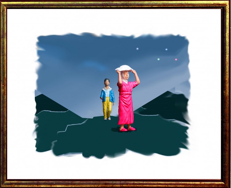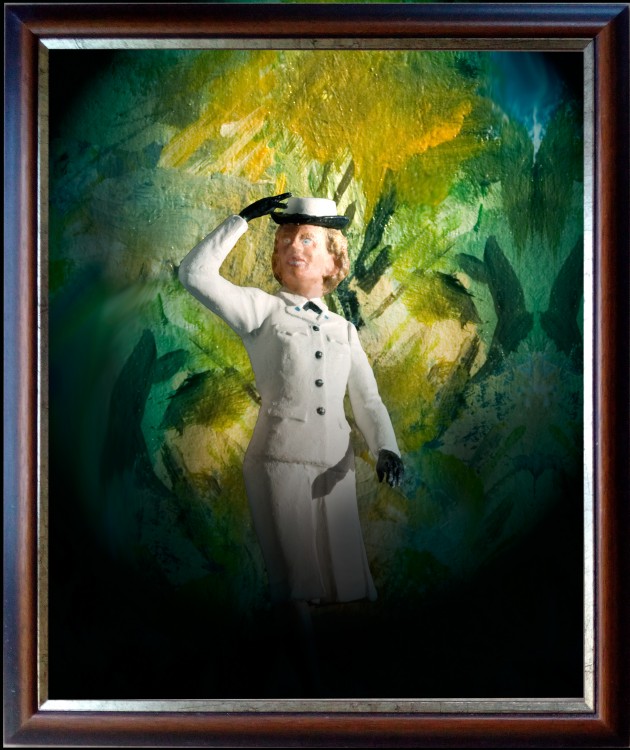 He has sourced plastic figurines as kit sets, and assembled and painted them as appropriate for his works. Those selected for Dardanelles Two Step for example, are also a celebration of the craft of the artisans who made them. O’Kane has used Photoshop, (a highly flexible computer tool) to combine these models with his conventional painting and photography, to create almost surreal sculptural scenes. He has grown to recognise the serendipitous moments that this multi-layered and sometimes lengthy process involves; unexpected additions and erasures are preserved when they delightfully occur, creating outcomes he could not have predicted.