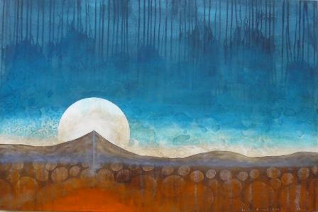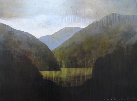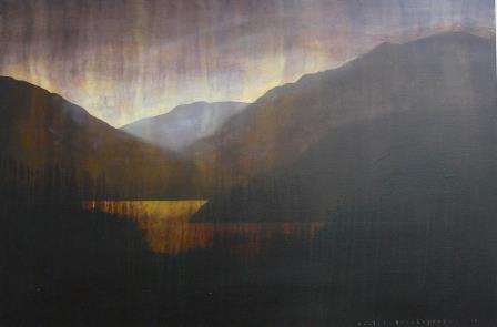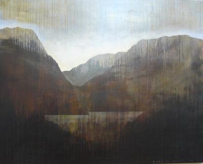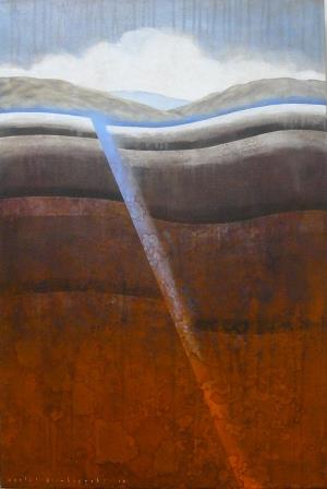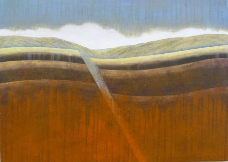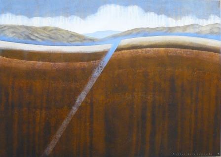This exhibition is dominated by two of Hirabayashi's ongoing series, High Country Lakes, and her geological series. These usually show either volcanic or faultline structures below. The mountains of Fiordland and the Otago coastline inspire Hirabayashi's love of place and their geological makeup. Light washes the high peaks and Hirabayashi's interest in geology produces the mountain building process. The structure of the mountain and valley is revealed with the lit surface or by the carved substance of Hirabayashi’s imagined world.