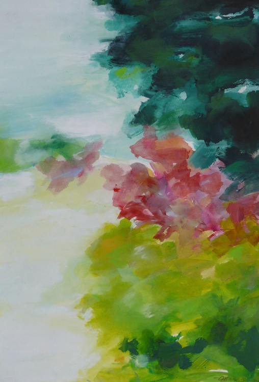 The sensory effects of a garden can never be fully conveyed in a painting but a painting of a garden can take the viewer on a journey to different places and into the imagination far beyond the confines of the garden itself.