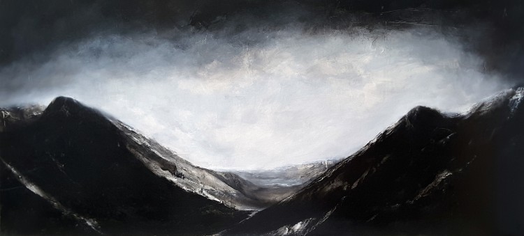 I am part of the Scottish Diaspora; I was born in Scotland but grew up in New Zealand. The feeling that home is always elsewhere is not something I can easily shake - I am an exile, a stranger in both the land of my birth as well as my adoptive home. That said, I feel that there's a similarity between the Scottish and New Zealand landscapes - particularly the South Island landscape - and this informs much of my work. These landscapes are not depictions of specific locales or 'real' places, but rather half remembered snapshots from a distant past. In the end, for an artist to work from the margins is not necessarily a bad thing.