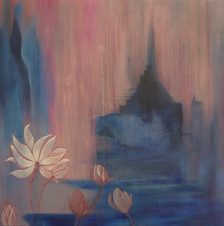 This series of abstracted expressive paintings reflects the artist’s inner responses and subsequent insights gained, through recent travel experiences. She uses multiple layers of acrylic paint together with glazing to reflect her full-bodied response to each encounter. The work emerges over many painting sessions rather than being pre-planned.
