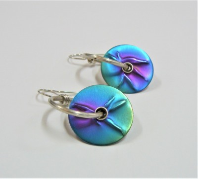 Blue Bamboo Earrings, anodised niobium and silver.