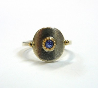 Sterling silver, 9ct gold and sapphire ring.