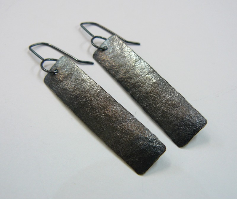 Strip Earrings, pure & sterling silver (oxidised).