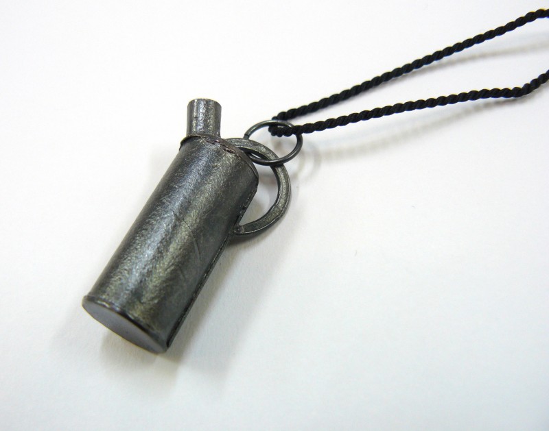 Vessel Pendant, sterling and pure silver on silk cord.