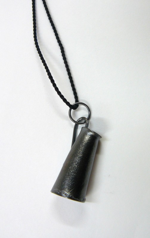 Vessel Pendant, sterling and pure silver on silk cord.
