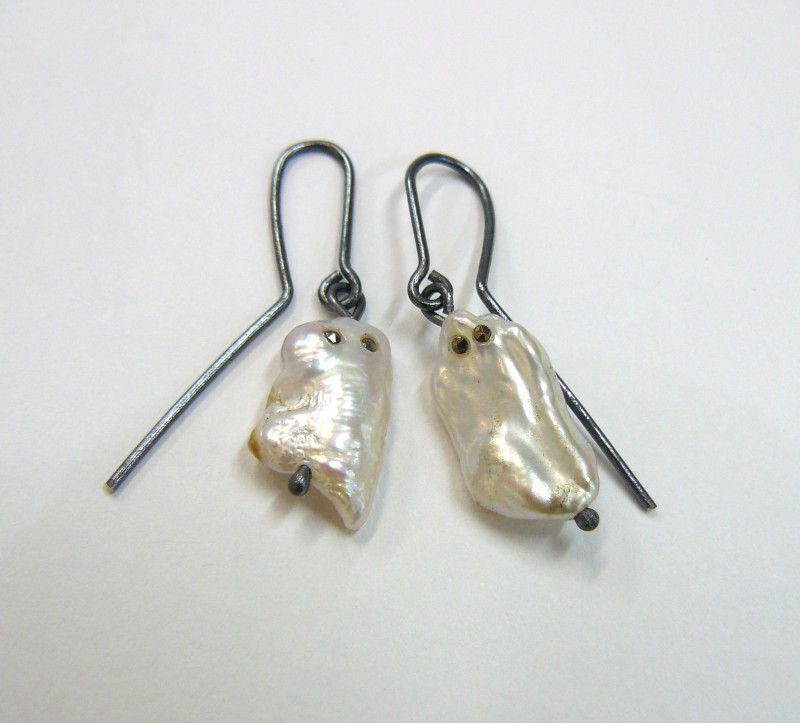 Ghost Earrings, sterling silver and pearls.
