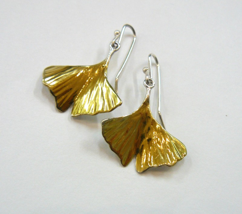 Gingko Leaf Earrings, sterling silver and gold-plate.