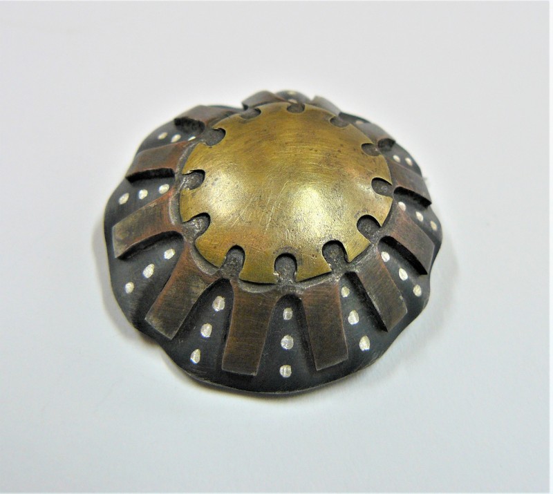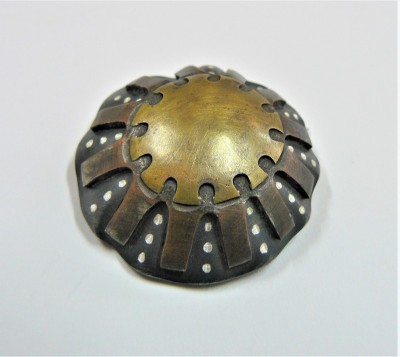 Ornate Limpet brooch, silver, brass and copper.