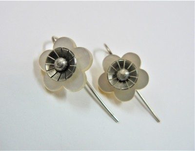 Mother of pearl and sterling silver Manuka Flower earrings. J1988. flower-size approx. 16mm diameter.