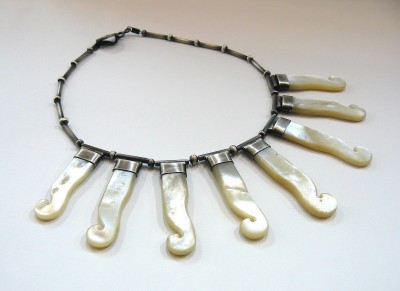 Fine silver, sterling silver and mother of pearl.