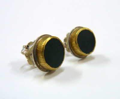 Pounamu, 22ct gold & sterling silver ear-studs.