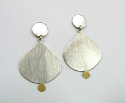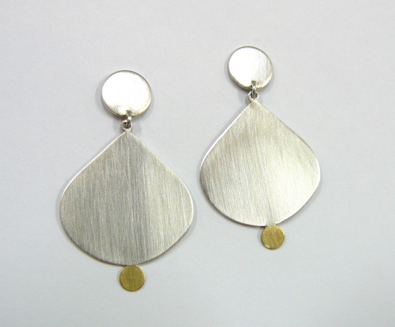 Disc & Fat-Teardrop Earrings, sterling silver & 18ct gold.