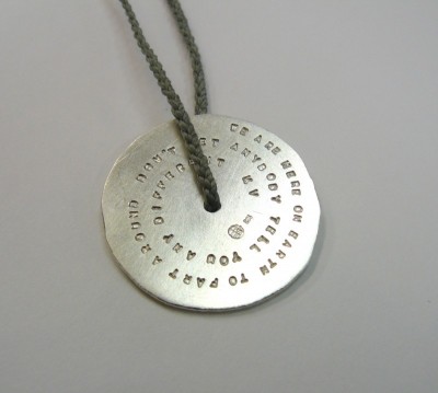 Pure silver pendant. "We are here on earth to fart around don't let anybody tell you any different" 36mm diameter. J2524.
